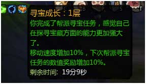 5. 寻宝成长:每次交付完寻宝任务后,还会获得另一个寻宝成长buff, 第一次交任务为1层,若在buff消失前完成下一个寻宝任务,buff会变为2层。层数越高,任务的奖励会越高,但buff的持续时间也越短,想有更高的奖励,那就要动作快哦!